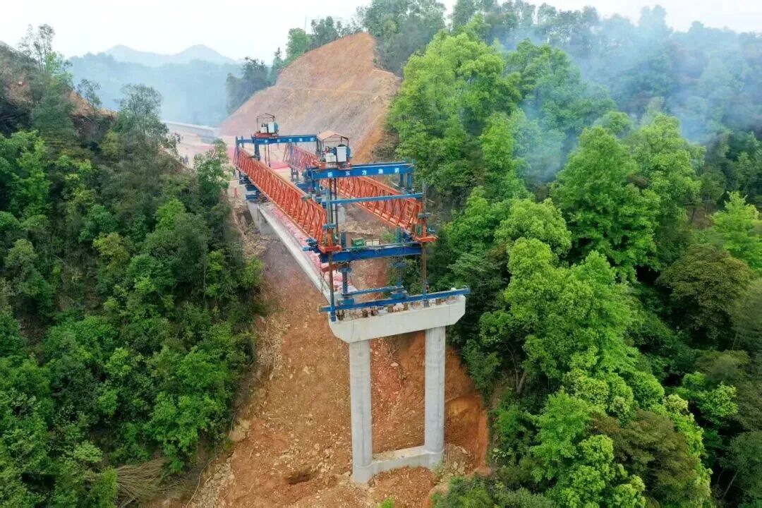 近日,浏阳至江背高速公路第二合同段太平桥互通A匝道1号桥施工现场,首片长30米、重101吨的预制箱梁精准落位至5号桥墩指定支座,标志着该项目桥梁工程正式转入上部结构施工阶段。